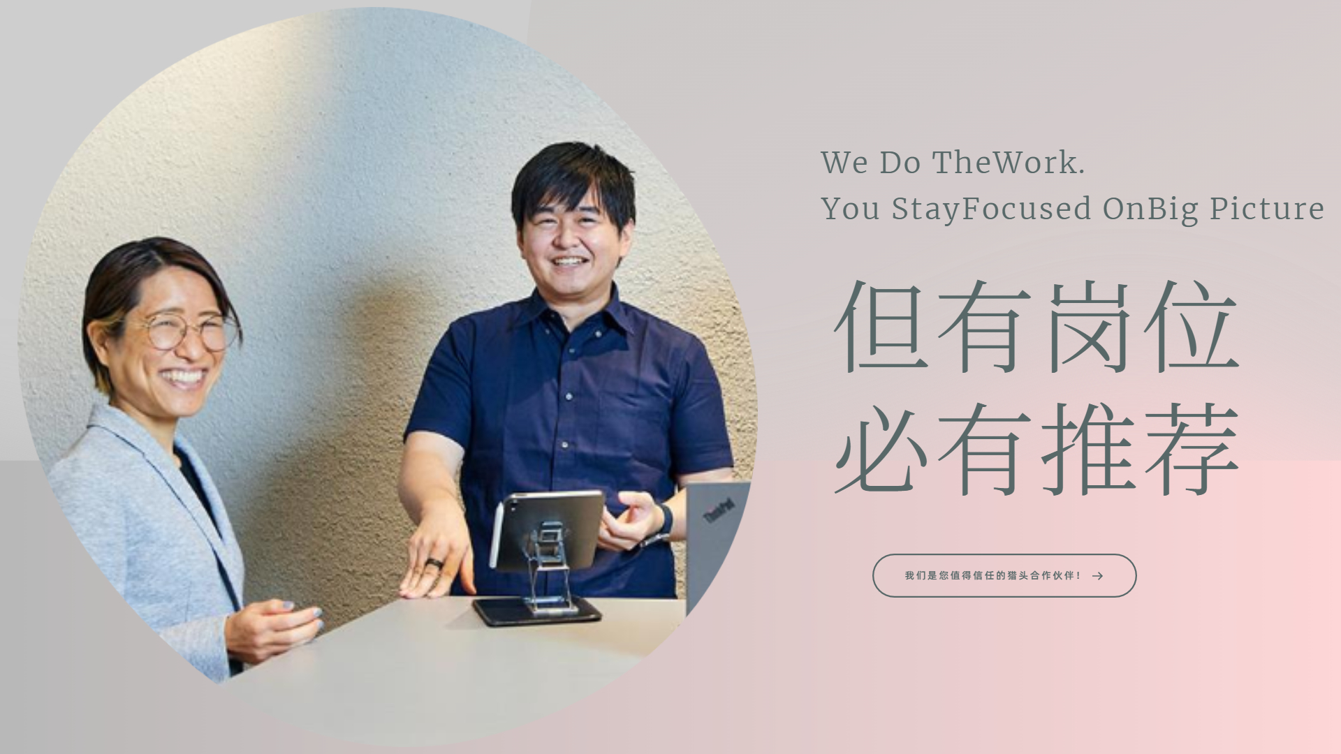 我們的顧問團隊從事招聘、獵頭工作都有十年以上的經驗,招聘經驗豐富,人脈資源廣。 我們的顧問無論是人才的資源,面試、甄選,還是和對企業進行崗位分析、招聘咨詢上面都有非常豐富的經驗,會是您值得信任的招聘合作伙伴。